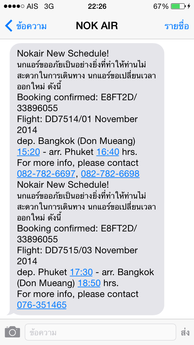 ถ้าไม่มี SMS นี้มา ผมจะเข้าใจผิดมั้ย ผมจะมาผิดไฟลท์มั้ย ?