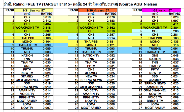 Rating Free TV ทั่วประเทศ ทั้ง 27 ช่อง จาก Nielsen ตั้งแต่ สิงหาคม ถึง สัปดาห์ล่าสุด