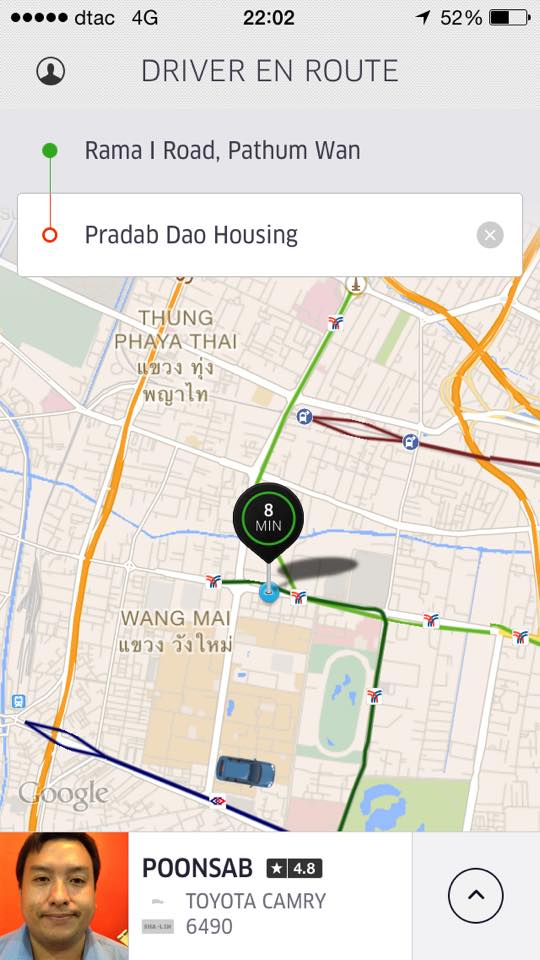 ก็เลยเปิด app เรียกเรื่อยๆเพราะรถก็น้อยมากๆ เรียกไปเกือบ 10 นาที ก็เด้งขึ้นมาว่าได้แล้ว โหผมนี่ดีใจแทบตายยขึ้นว่าอีก 7 นาทีถึงได้รถ Camry ด้วยครับ ดีใจอีก เพราะเรียก UBERX ได้ Camry ซักพักคนขับก็โทรมาถาม
