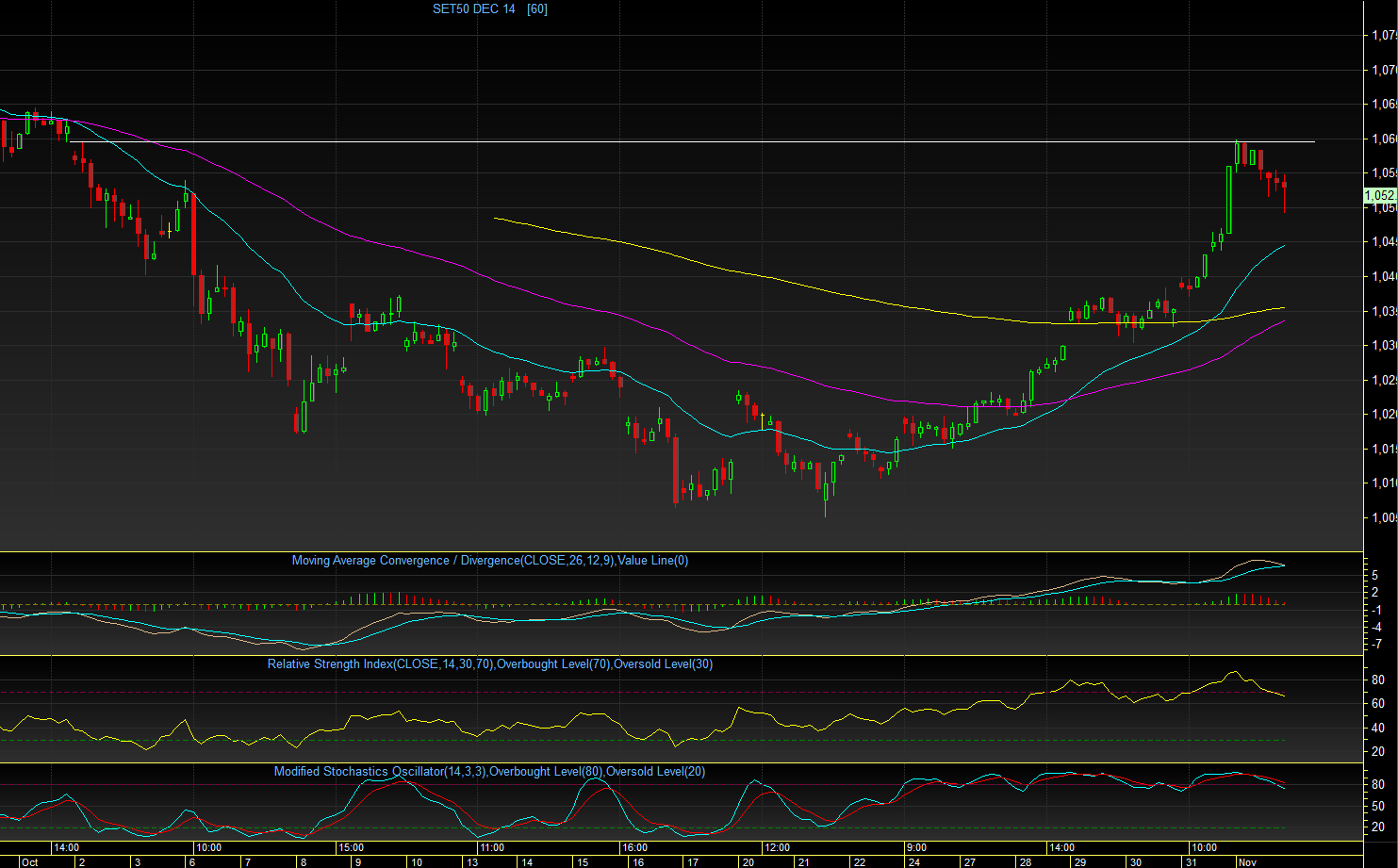 TF60 : เช้าวานนี้ ใต่ระดับขึ้นไปชนแนวต้าน แถวๆ 1059.9 จุด จากนั้นก็เริ่มเห็นแรงเทขาย ออกมา เป็นระยะๆ จนมีบางช่วง