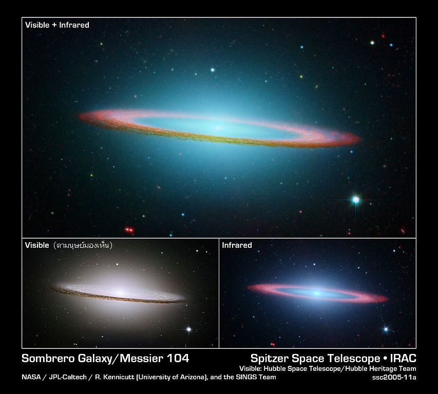 อีกภาพหนึ่ง คือ Sombrero Galaxy เทียบให้ดูใน 2 ย่านแสง
