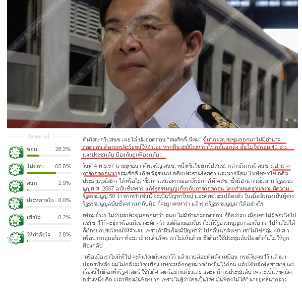 ยิ่งใกล้วันที่สภานิติบัญญัติแห่งชาติ(สนช.) จะประชุมชี้ชะตากรณีถอดถอนนายสมศักดิ์ เกียรติสุรนนท์ อดีตประธานรัฐสภา จากพรรคเพื่อไทย กับนายนิคม ไวยรัชพานิช อดีตประธานวุฒิสภา สาวกระบอบแม้วกรณีปฏิบัติหน้าที่