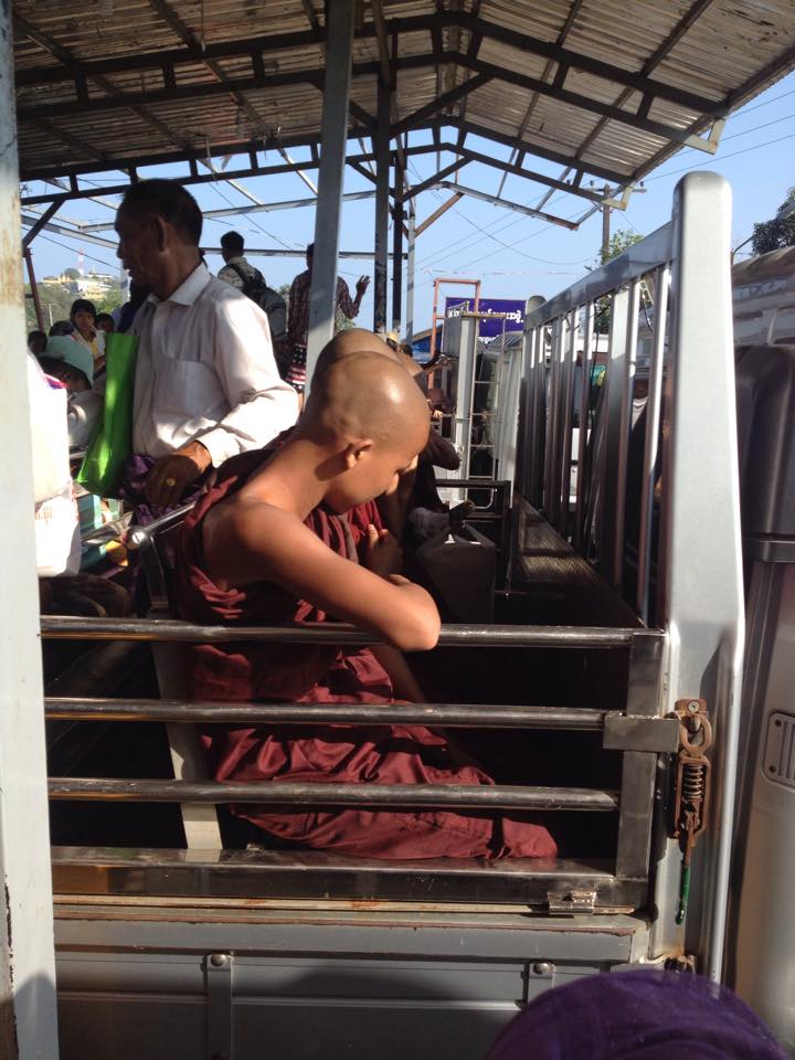 วันแรก 16/10/57 ออกเดินทางไปถึงย่างกุ้งถึงเวลาประมาณ 9 โมงกว่าๆ คุยกับเพื่อนไว้ว่าจะไปหงสาวดีก่อนเลย จึงหารถ ก่อนอื่นเราไปกัน 2 คนนะคะ พอออกจากสนามบินเราจะเจอรถแท็คซี่มากมาย มีทั้งเหมาเป็นทริปพาเที่ยว มีทั้งพาไปส่งตามที่ต่าง ๆ และมีรถตู้ด้วย รถแท็คซี่เราสามารถเหมาให้เขาพาไปหงสาวดีได้นะคะ เขามีบริการด้วยนะ ราคาพอสมควรอยู่ แต่เราไปแค่ 2 คน จึงให้เขาไปส่งสถานีขึ้นรถไปหงสาวดี