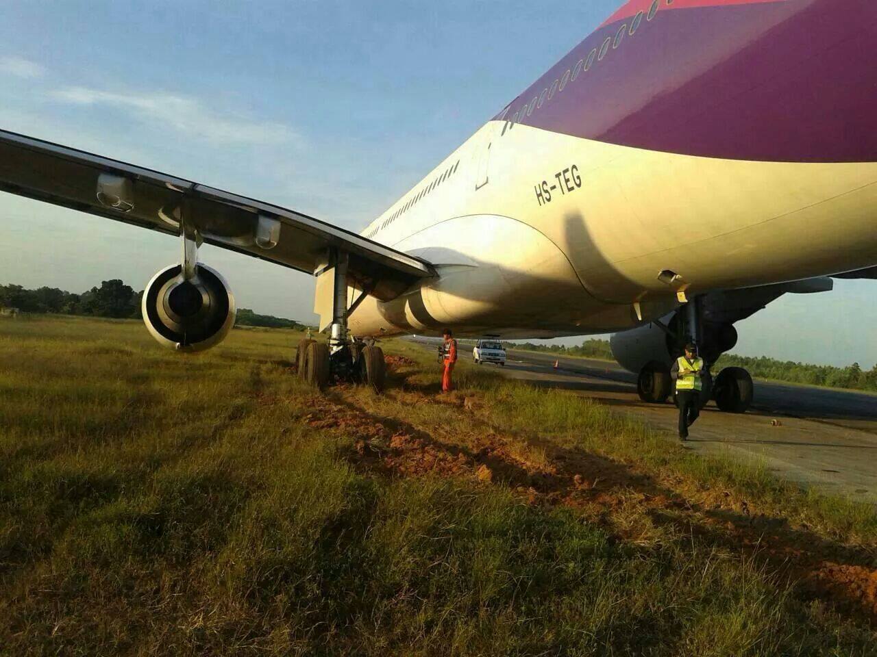 เครื่องบินการบินไทย TG047 ลื่นไถลออกนอกรันเวย์วันนี้ที่สนามบินขอนแก่น