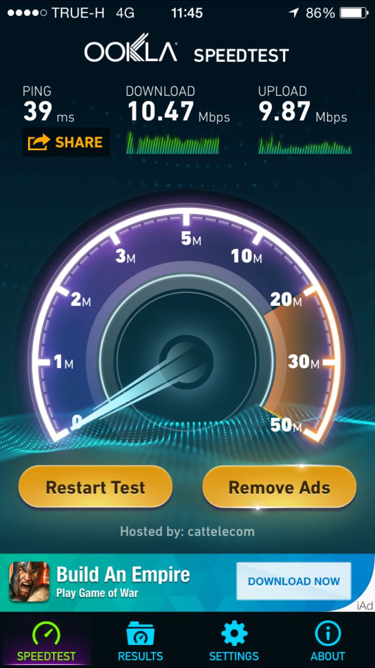 ความเร็ว 4G อยู่ในระดับที่ใช้ได้ เนื่องจากพื้นที่นี้มีจำนวนผู้ใช้งานค่อนข้างหนาแน่น