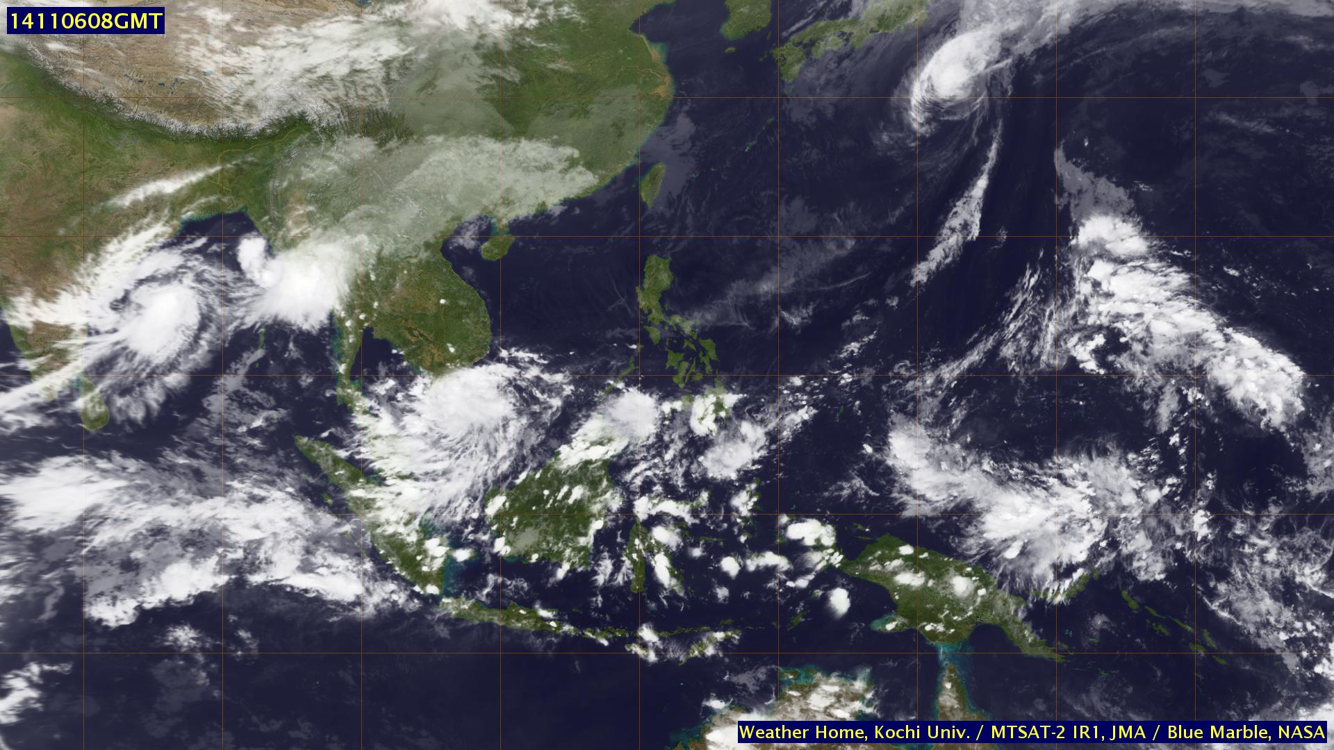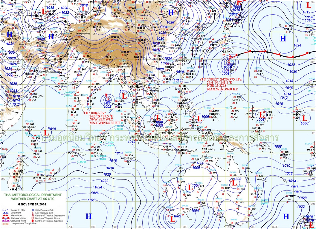 ในช่วงวันที่ 8-10 พฤศจิกายน 2557 หย่อมความกดอากาศต่ำกำลังแรงที่ปกคลุมทะเลจีนใต้จะเคลื่อนตัวผ่านภาคใต้ตอนล่าง ลักษณะเช่นนี้ทำให้ภาคใต้ตั้งแต่จังหวัดชุมพรลงไปจะมีฝนเพิ่มมากขึ้นและมีฝนตกหนักถึงหนักมากเกิดขึ้นได้ และคลื่นลมในอ่าวไทยจะมีกำลังแรงขึ้นด้วย โดยจะมีคลื่นสูง 2-3 เมตร จึงขอให้ประชาชนที่อาศัยในภาคใต้ตั้งแต่จังหวัดชุมพรลงไปทั้งฝั่งอ่าวไทยและอันดามันระวังอันตรายจากฝนตกหนักและฝนตกสะสมไว้ด้วย สำหรับชาวเรือในอ่าวไทยควรเดินเรือด้วยความระมัดระวัง