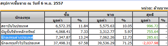 สรุปการซื้อขาย ณ วันที่ 6 พ.ย. 2557