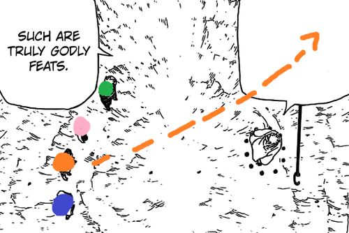 แล้วฉากจิ้มนี่คือ เราชอบมากก คืออาจารย์จะไม่ค่อยวาดหน้าไอ้เกะให้เห็น เต็มๆ ชอบวาดแต่ช่วงปาก ไม่รู้เพราะอะไร