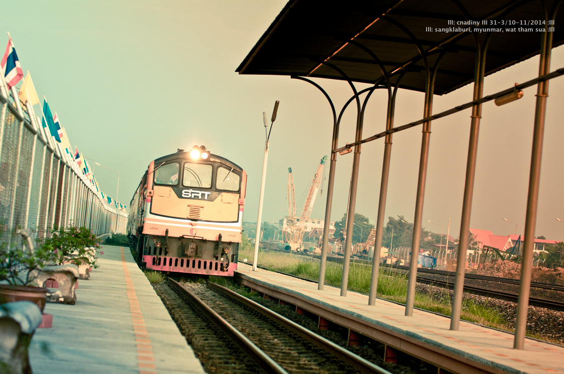 เช้าวันศุกร์ ด้วยความไม่คุ้นเส้นทางบวกกับกลัวรถจะติดเพราะเป็นวันธรรมดาเลยออกจากบ้านมาเร็วมาก เรียกแทกซี้มาถึงสถาณีรถไฟตลิ่งชันประมาน 6.45 เดินเข้าไปซื้อตั๋วเลยครับ กว่ารถจะออกก็ 8.05 นั้นไง กะแล้วว่าต้องมาถึงก่อน ด้วยความว่างเราก็เดินไปถ่ายรูปเล่นๆแล้วก็นั่งฟังเพลงไปเรื่อยๆรอรถไฟ