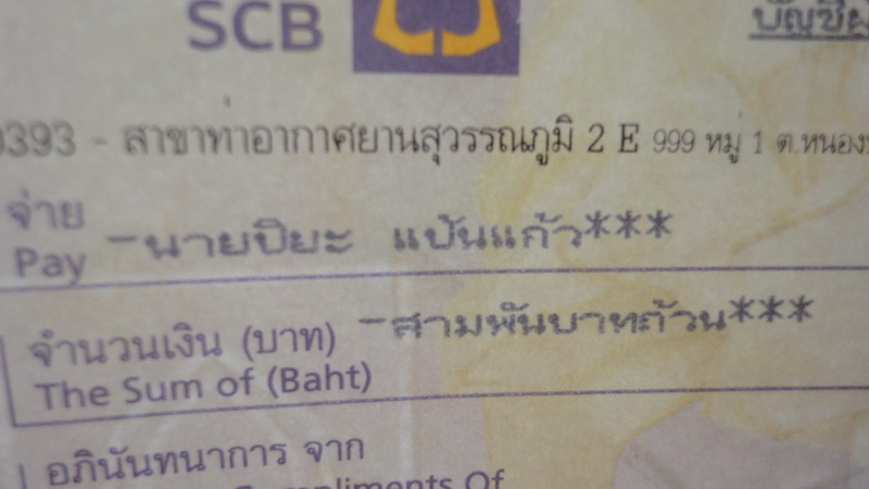 คือ....Miss….ได้ส่งเช็คของขวัญมาให้กระผม 3,000 บาท