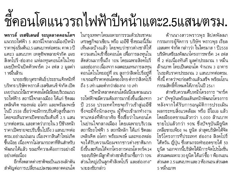ชี้ คอนโดแนวรถไฟฟ้า ปีหน้าแตะ 2.5แสน/ตรม.