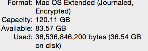 แต่มันก็แสดงว่าว่าง 83.57 GB free of 120.11 GB