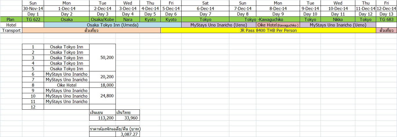 มีโอกาสไปชมใบไม้แดงช่วงเดือน 11 จำนวน 14 วัน 12 คืน จัดทำโปรแกรมอย่างคร่าว ๆ รวบรวมจากเพื่อนๆ ที่รีวิวในห้องบูล ผิดพลาดหรือมีข้อแนะนำดี ๆ รบกวนแก้ไขให้ด้วยครับ พักเกียวโตทั้ง 12 คืน โปรแกรมอาจสลับวันต