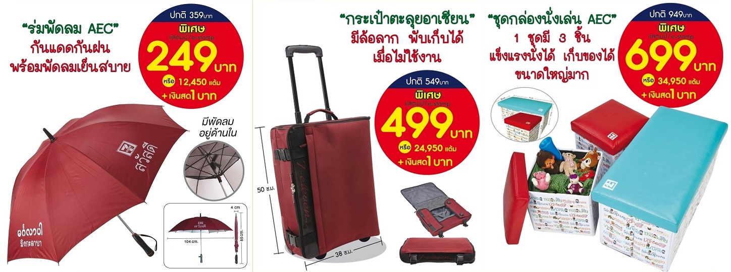 2. ร่มพัดลม AEC + กระเป๋าตะลุยอาเซียน + ชุดกล่องนั่งเล่น AEC จาก 1,450 บาท พิเศษ 800 บาท สามารถแลกได้โดย