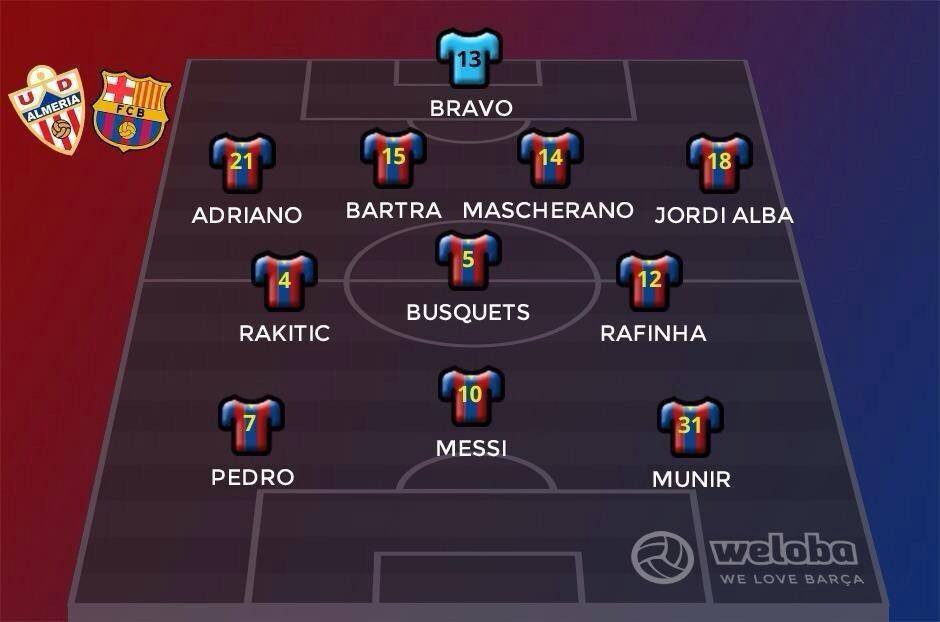 สำรอง Ter Stegen, Alves, Montoya, Pique, Xavi, Suarez, Neymar