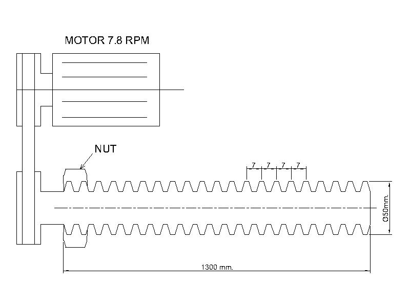 จากในรูป ต้องการรู้ว่าภายใน 10 วินาที จะต้องให้มอเตอร์หมุนกี่รอบ เพื่อให้ตัว Nut เคลื่อนที่ไปจนสุดระยะทาง 1300 มม.