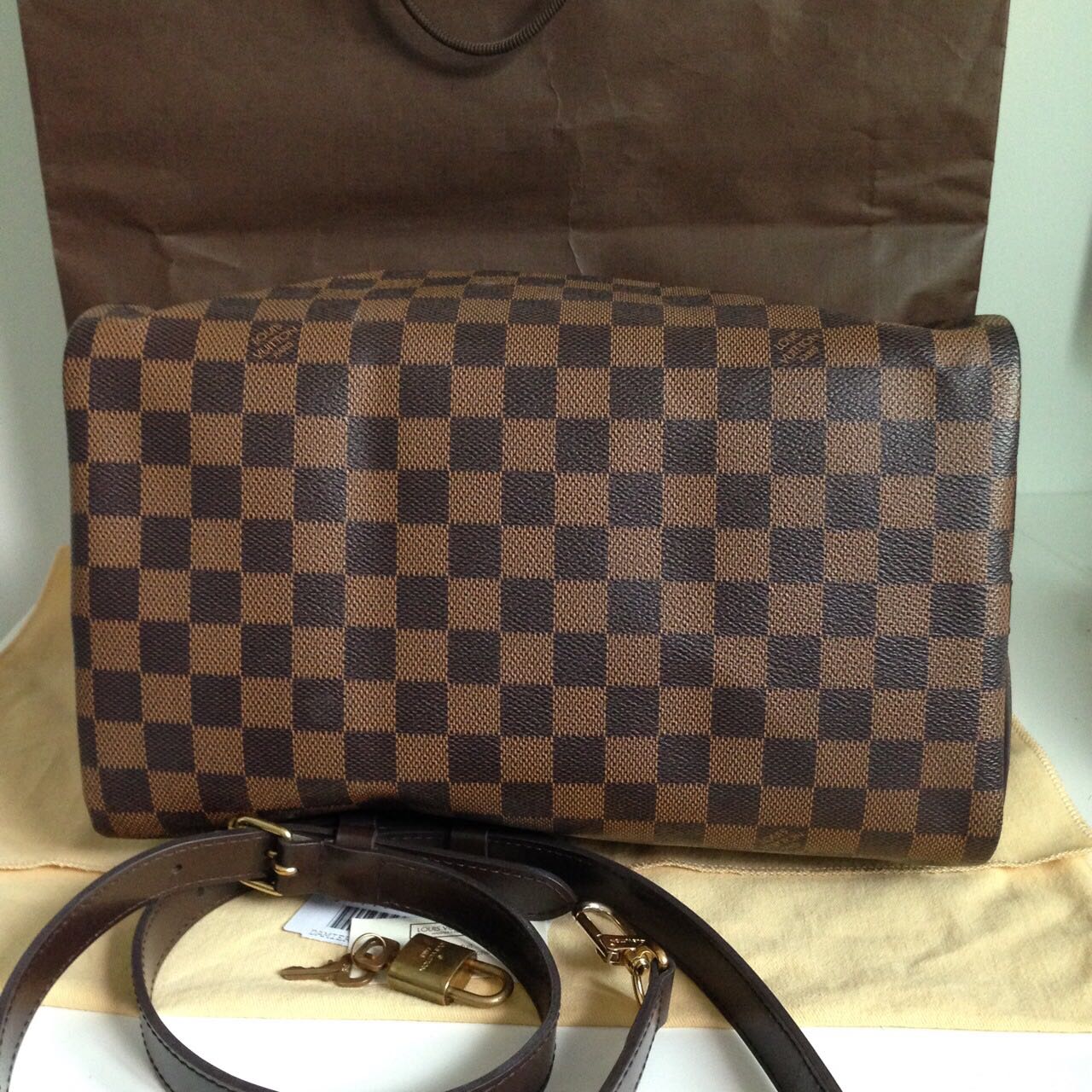 รบกวนเซียน LV Speedy Damier ช่วยเช็คให้หน่อยค่ะว่าใบนี้ของแท้มั้ย ไซส์ 30 นะคะ จะซื้อมือสองค่ะ ไปดูใบจริงมาแล้ว แต่ไม่ค่อยแน่ใจ และถ้าจะซื้อ Sholder strap มาสะพาย ต้องซื้อแบบไหนคะ ขนาดความยาวเท่าไหร่