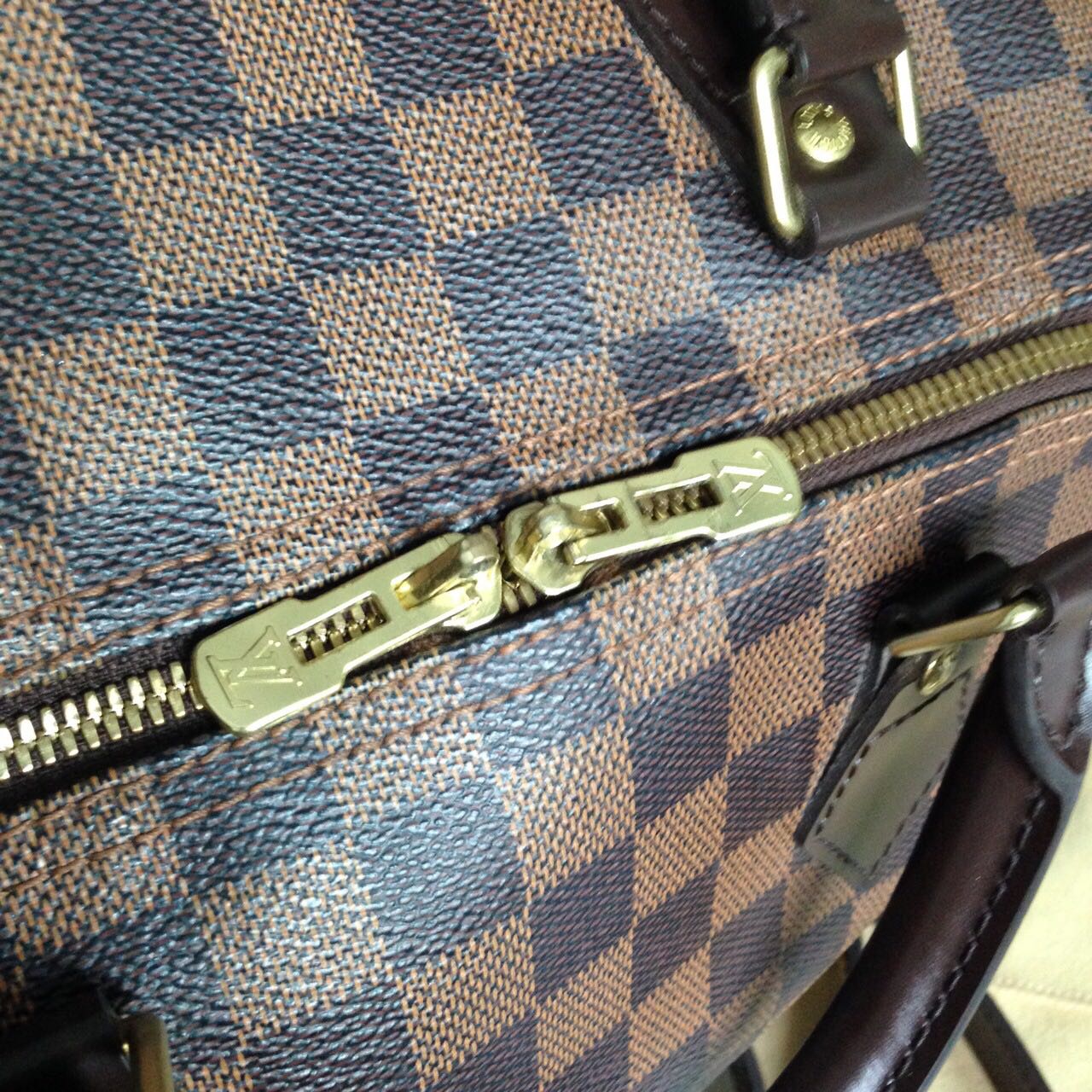 คืออยากจะทราบว่า หูจับกระเป๋า Speedy ลาย Damier ทำมาจากอะไรอ่ะค่ะ