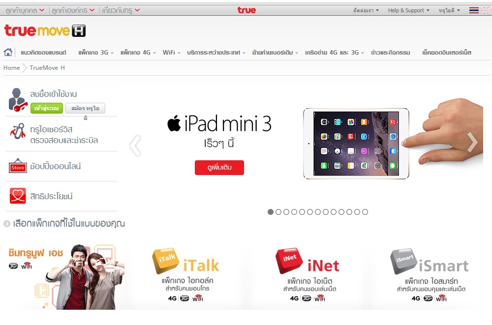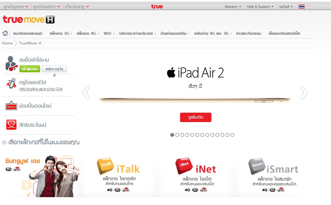 True Dtac อัพเดทหน้าเว็บ iPad Air2 / Mini 3 แล้วจ้า