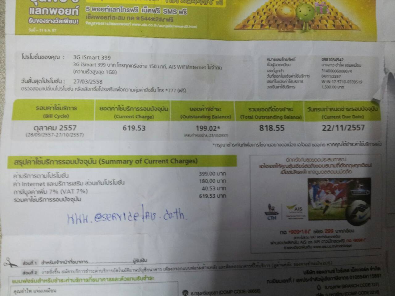 ประจาน AIS เรียกเก็บเงิน 260.- เป็นคุณจะให้ไหม?