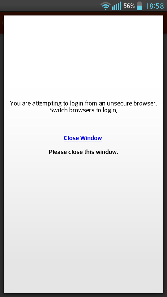 แต่มันดันขึ้นหน้านี้มาครับ บอกว่า Browser ไม่ปลอดภัย ให้เปลี่ยน Browser แล้วก็กดอะไรไม่ได้เลยนอกจากปุ่ม back