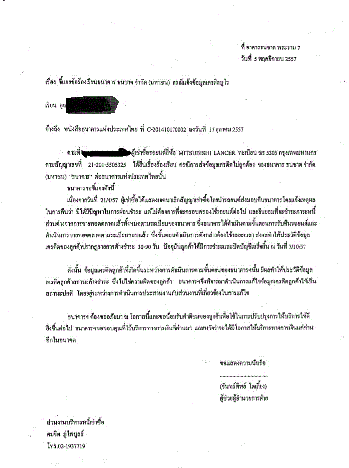 ทางธนาคารธนชาติ ยอมส่งเรื่องแก้ไขข้อมูลเครดิตบูโรให้แล้วครับ