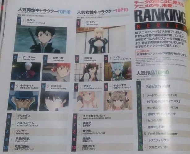 อันดับตัวละครหญิงยอดนิยมจากนิตยสาร Newtype Magazine เดือน 12/2014