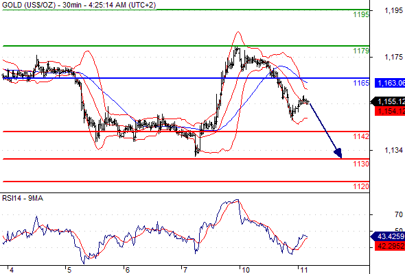 Our preference: Short positions below 1165 with targets @ 1142 & 1130 in extension.