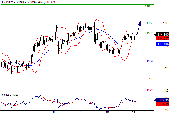 Our preference: Long positions above 113.8 with targets @ 115.05 & 115.5 in extension.