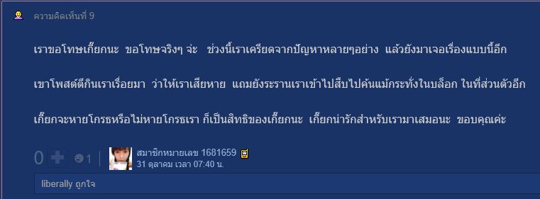 แต่สิ่งที่ทำให้เราโกรธนายคือ เราเห็นนายนินทาเราลับหลังในกระทู้ที่เป็นประเด็นปัญหากับคู่กรณีของเรา เพราะอะไร ? หาพวก ?