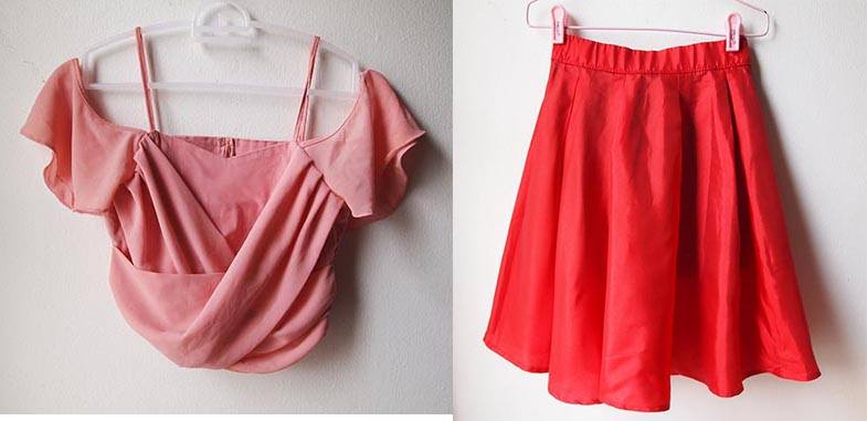 2.Used ชุดเซตเสื้อครอปโชว์ไหล่ + กระโปรงสีแดง (ใส่ครั้งเดียว ไม่มีตำหนิ)