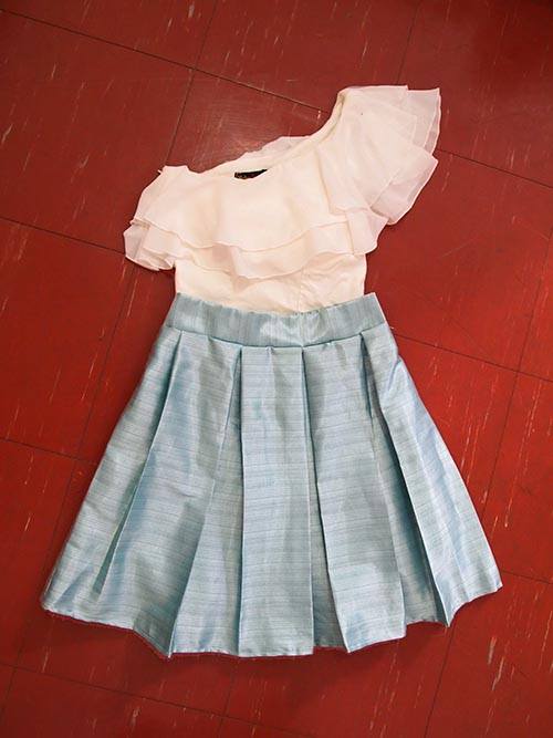 เสื้อ อก 30-32 กระโปรงสม๊อคเอวด้านหลัง เอวสูง 26-28 ยาว 19 ส่งต่อ 400 บาท