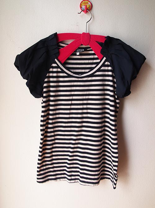 22.Used เสื้อยืดลายขวาง น้ำเงินกรม-ขาว