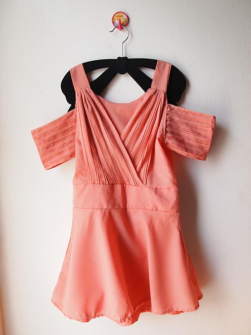 29.Used จั๊มสูทโชว์ไหล่ สีโอรส ด้านนอกเป็นกระโปรงปิดอีกชั้น