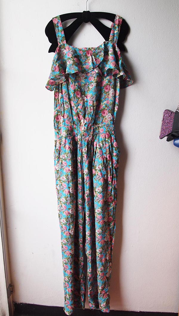 32. Used จั้มสูทขายาวสีเขียวลายดอก