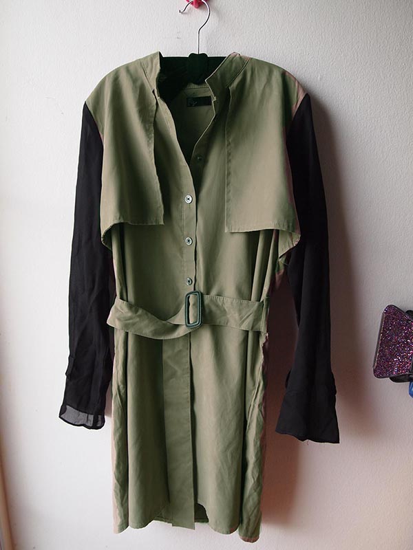 37.Used เดรสแขนยาว สีเขียวทหาร พร้อมเข็มขัด