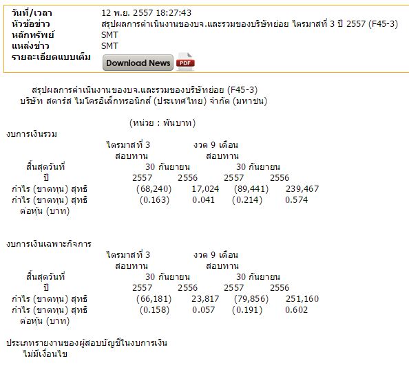 เห็นตั้งแต่น้ำท่วมจนทุกวันนี้ก็ยังไม่ฟื้นเลย ผมกำลังสนใจในหุ้น turn around พอดี คิดว่าตอนนี้ smt ผ่านจุดต่ำสุดหรือยังครับเพราะเห็นในบทวิเคราะห์บอกว่า แม้กำไรจากธุรกิจยังเป็นลบ แต่ EBIT เป็นบวก ขอ