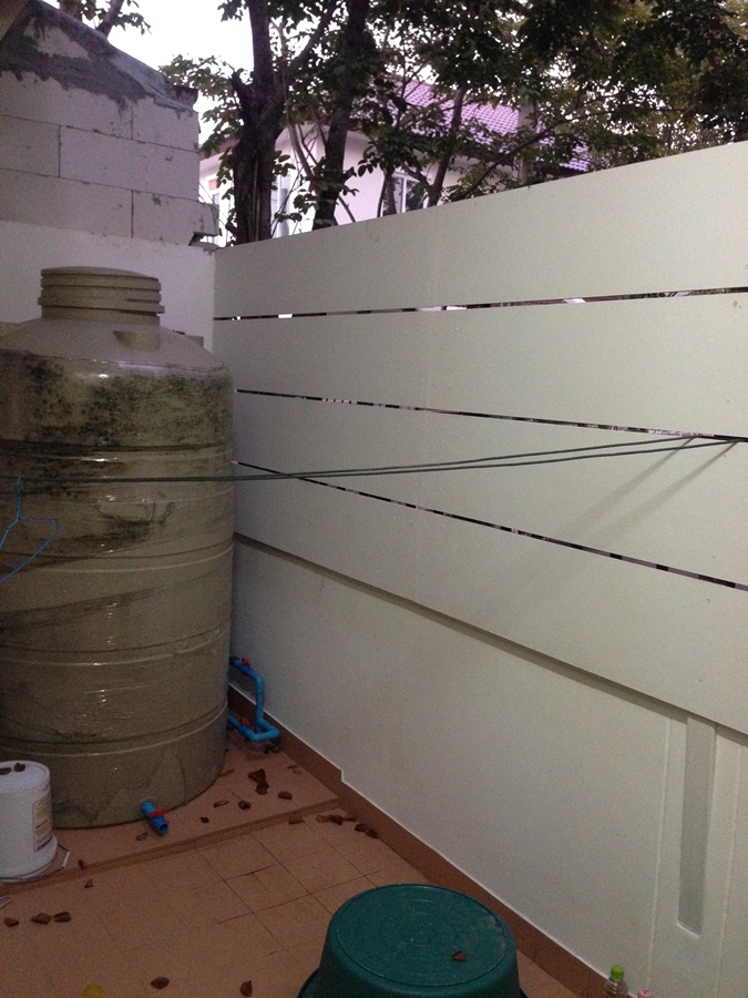 ดูจากรูป ถ้าทำกำแพงจากพื้นขึ้นมา ก็ติดตรงถังน้ำ จะย้ายก็ลำบาก โครงการบอกลงเข็มไว้เท่ากับตัวบ้าน(โครงการบอก ไม่ค่อยแน่ใจ) หรือถ้าไม่ทำกำแพง เอาไม้ระแนงติดไว้ให้ดูดี แต่ก็ไม่สามารถเอาตู้ลอยมาติดได้เลยใช่มั้ยครับ ถ้าฝนตกอีก ก็คงเปียก ยิ่งถ้ามาแบบแรงๆด้วย เพราะว่าจะซื้อครัวสำเร็จรูปในห้างมาติดแทน ใครพอมีไอเดียแจ่มๆบ้างมั้ยครับ ขอแบบงบไม่เยอะมากครับ