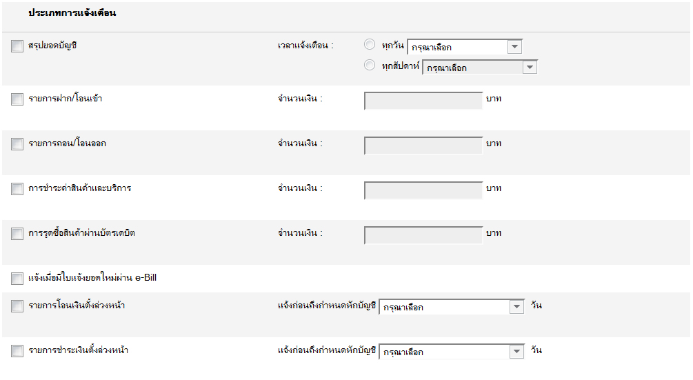 แต่พอเข้ามาหน้าตั้งค่าแล้วงงค่ะ เราต้องติ๊กช่อง "รายการฝาก/โอนเข้า" ใช่ไหมคะ แต่งงตรงที่ ทำไมต้องให้ใส่จำนวนเงินคะ
