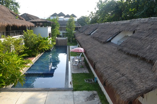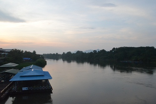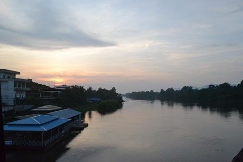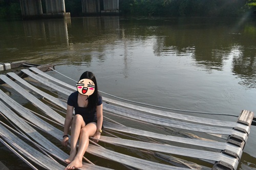 กลับจากสะพานข้ามแม่น้ำแควกลับเข้าที่พักกะจะลงไปเล่นน้ำอีกที่ที่ติดอยู่กับแม่น้ำ