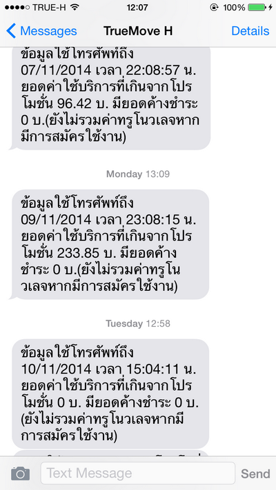ในระหว่างการใช้งานเ วันที่ 3-9 พ.ย. เราได้ใช้อินเตอร์เน็ตเกิน เราเช็คผ่าน sms มันแจ้งว่าเราใช้เกินมา 200 กว่าบาท