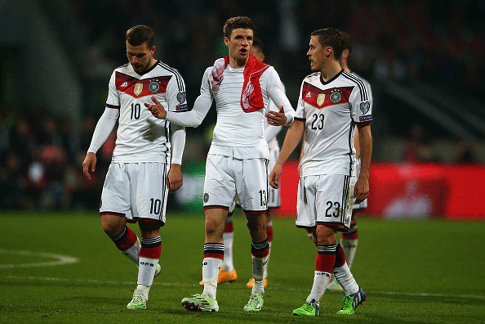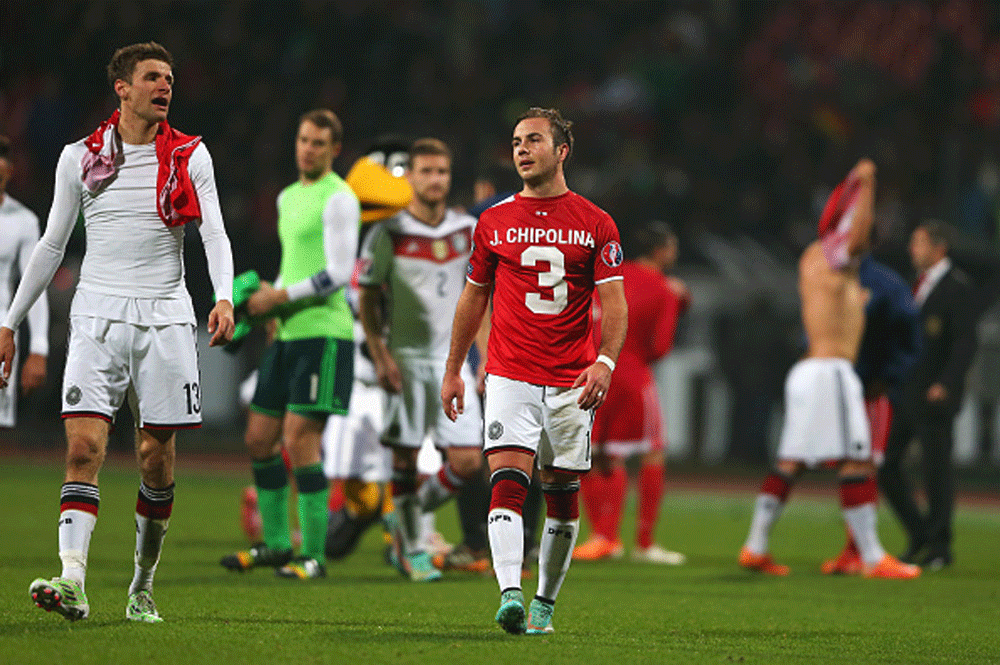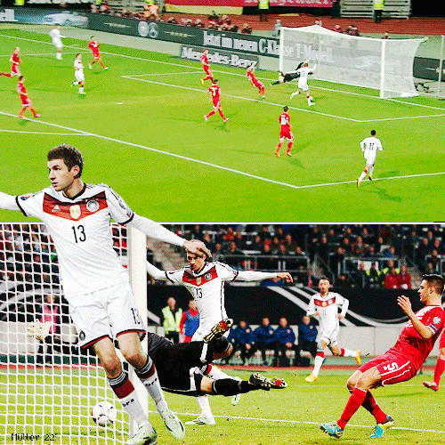 ... เริ่มเกมมาได้เพียง 12 นาที แฟนบอลอินทรีเหล็กก็ได้ลุกขึ้นเฮกันก่อน หลังทีมชาติของตัวเองขึ้นนำเร็ว จากจังหวะที่ คาริม เบลลาราบี แทงไปข้างหน้าทางริมเส้นฝั่งขวาให้ ชโกดราน มุสตาฟี เติมขึ้นมาเปิดยัดเข้าไปในเขตโทษ บอลกระดอนเสาแรกก่อนไปเข้าทาง โธมัส มุลเลอร์ ตั้งเท้าวอลเลย์ด้วยขวาเน้นๆ ส่งบอลเข้าไปนอนจมอยู่ก้นตาข่าย ช่วยให้เยอรมันขึ้นนำ 1-0
