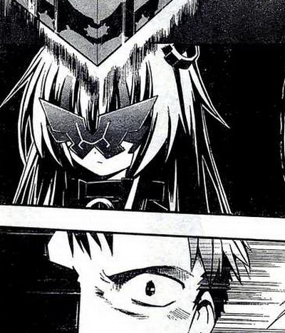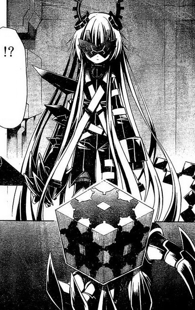 สิ่งที่ทั้ง3รู้สึกมาจากออโตมาต้าลึกลับ ในรูปเเบบเด็กสาวตัวเล็ก ที่กำลังจะยืดกล่อง cube มาด้านหน้า