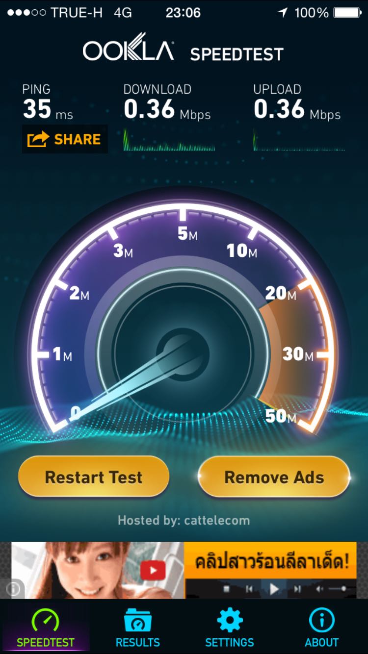 ใช้ 3G+ อยู่ย่านมีนบุรี กรุงเทพมหานคร ตั้งแต่เปิดคลื่นใหม่มา ก็ความเร็วตกลงมาเลย เมื่อก่อน 2Mbps / 0.5Mbps และไม่ได้ติด FUP ด้วยซ้ำ นี่คือความเร็วที่ทดสอบล่าสุดครับ // รบกวนทาง TRUE-H มาชี้แจงที ว่าเ
