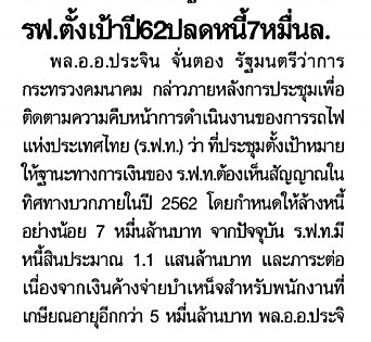 คอลัมน์ รายงานพิเศษ จากข่าวสดออนไลน์ ปัญหาประสิทธิภาพการให้บริการและภาระหนี้มหาศาลกว่า 1.1 แสนล้านบาท ของการรถไฟแห่งประเทศไทย (รฟท.) ทำให้นายประภัสร์ จงสงวน ผู้ว่าการการรถไฟแห่งประเทศไทยต้องเร่งเดิน