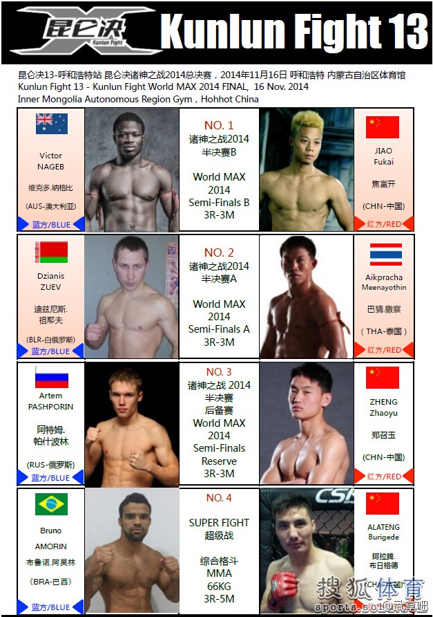 เดี๋ยวนี้ประเทศจีนก็ไม่เบา มีจัดแข่งมวยชิงเงินรางวัลคล้ายรายการ K-1, Glory, Thai Fight, Max Muaythai ชื่อรายการ KunLun Fight จัดมารวมครั้งนี้ครั้งที่ 7 แล้ว มวยที่ประกบคู่ก็น่าดูทั้งนั้น รุ่น 70 กิโล