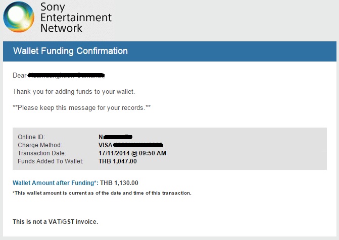 คือผมไม่ได้แตะเจ้า PS3 มาเกือบเดือนแล้ว แล้วอยู่ ๆ เมื่อเช้านี้เวลาประมาณ 8.50 น. ก็ได้มี message ส่งมาว่าเงินออก 1,047.00 บาท (โชคดีที่ผมใส่เงินไว้ในบัญชทำธุรกรรมออนไลน์ไว้น้อย) เงินในบัญชีผมมีประมาณพันนิด ๆ ผมงงมากเลยแล้วมันก็ส่งเมลล์มา