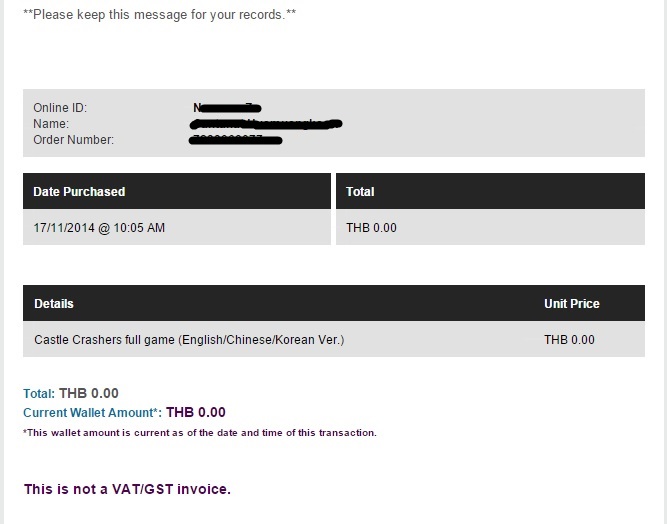 หลังจากนั้น 10 นาทีก็มีเมลล์อีกฉบับว่าผมได้ทำการซื้อไอ้เกมส์ กาก ๆ นี้มาเล่น