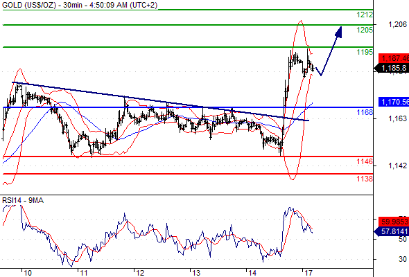 Our preference: Long positions above 1168 with targets @ 1195 & 1205 in extension.