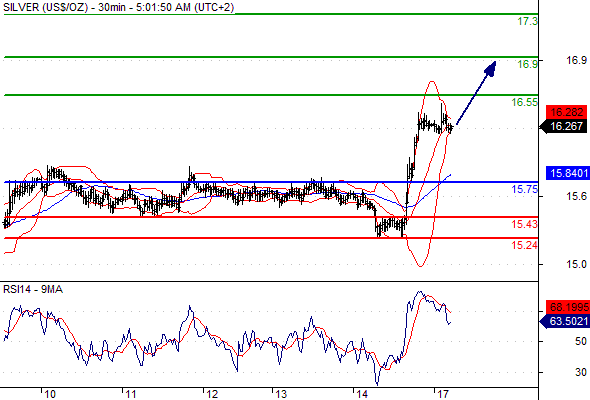 Our preference: Long positions above 15.75 with targets @ 16.55 & 16.9 in extension.
